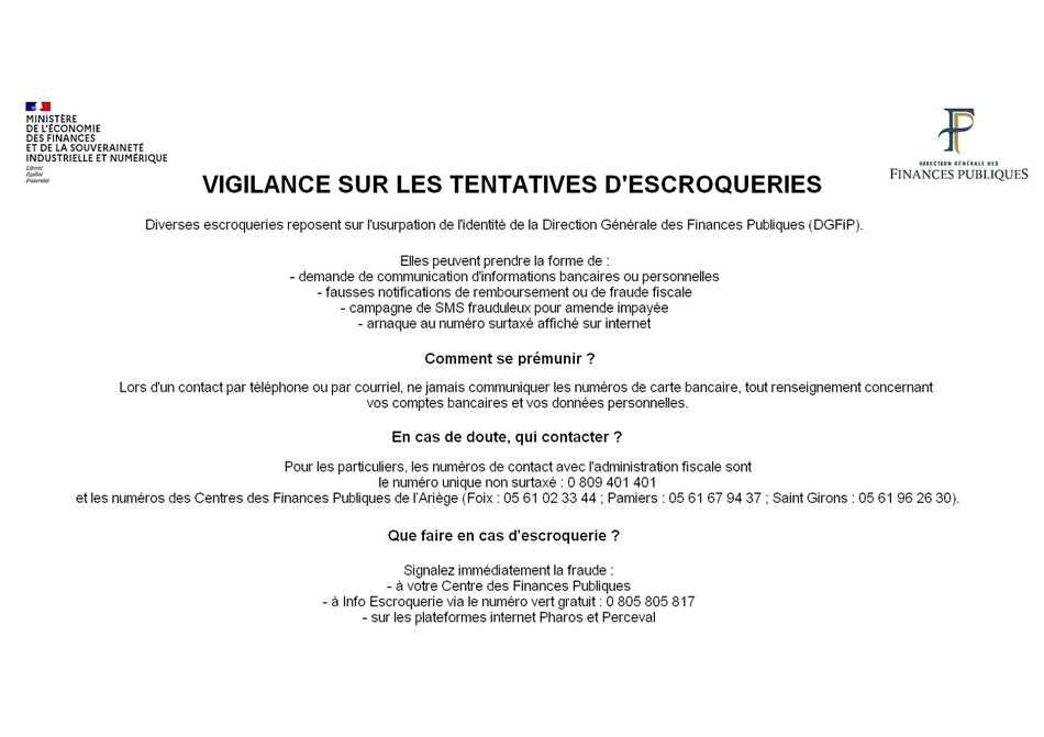 DGFIP - VIGILANCE SUR LES TENTATIVES D'ESCROQUERIES